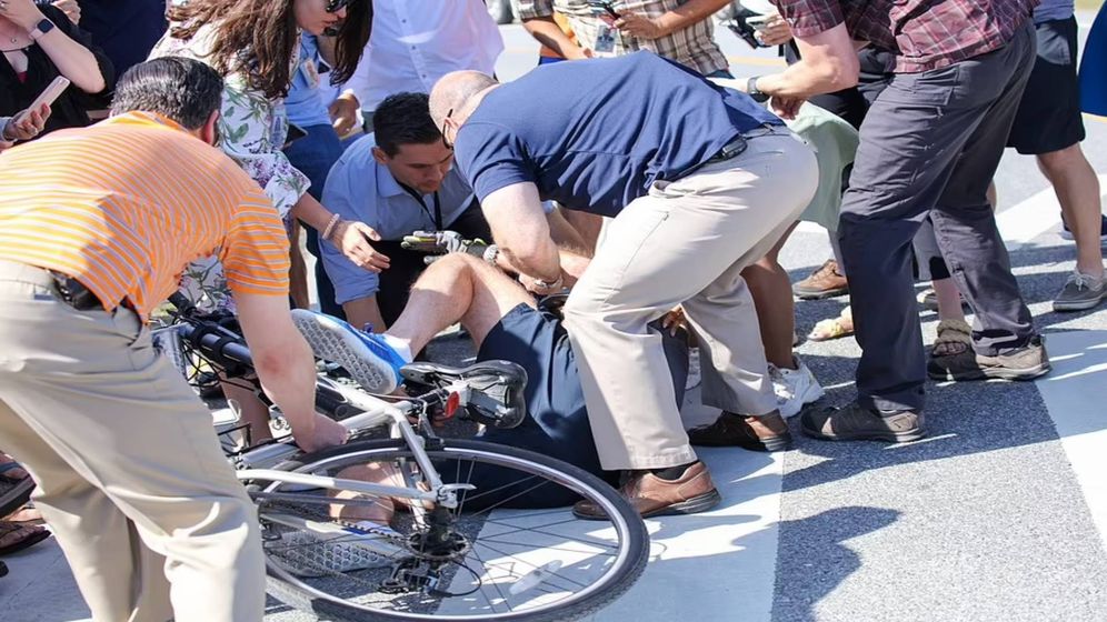 Us President Joe Biden Falls Off Bike Joe Biden Falls From Bike Gets Up Says I M Good